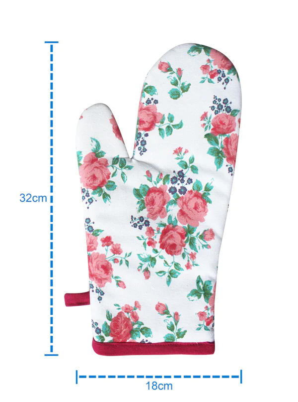 .Enhance your cooking experience with our Cotton Small Pink Rose Oven Gloves.