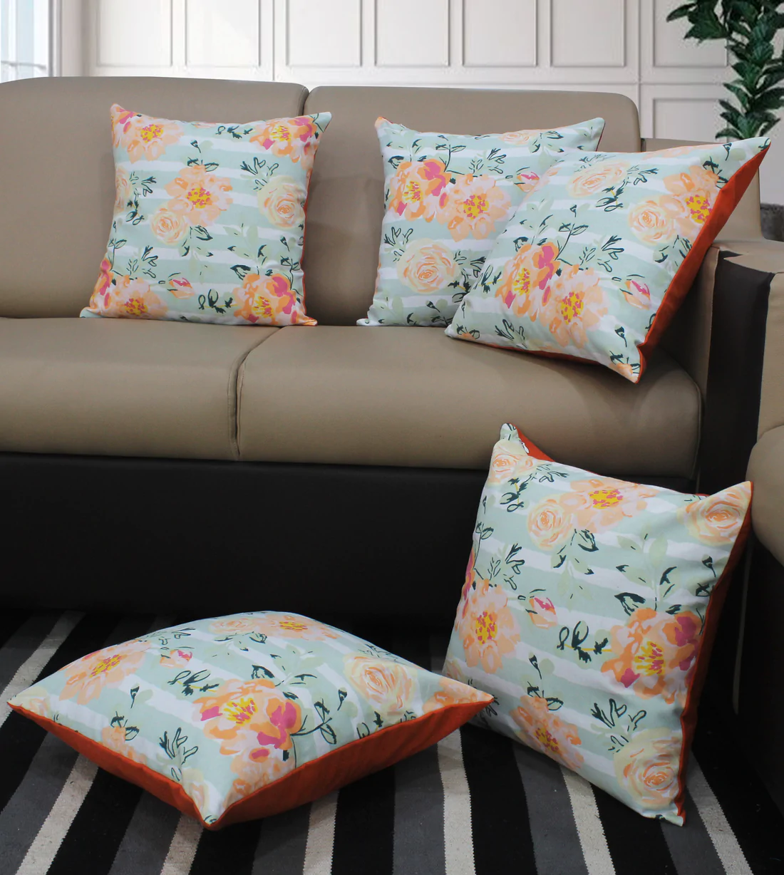 Floral design or flower arrangement is the art of using plant materials and flowers to create an eye-catching and balanced composition or display. This Designs consists of Stella Flower Structure in the Cushion Covers with the pack of 5 Pieces.