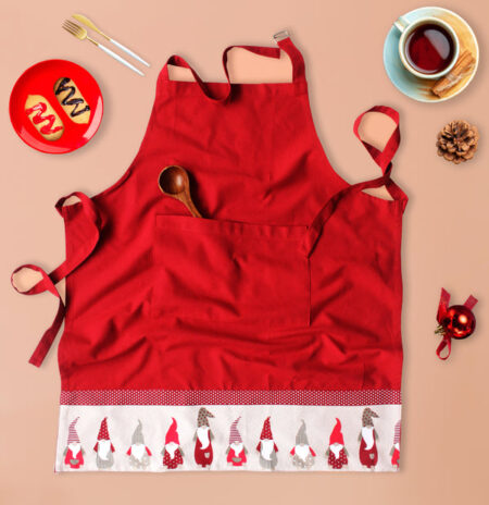 Charm your kitchen with our Cotton Gnome Border Apron. High-quality, adorable design. Cook in style